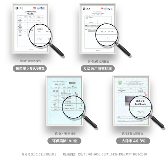 Solid wood carbon crystal board在實用新型專利認證的基礎上,鵬鴻將“黑科技”碳晶技術應用于板材,實現復合碳纖維與實木板材的強強聯合。板材具備物理抗菌功能的同時,更依托碳晶技術,實現了凈醛環保、高穩定性等優異性能,是家居裝修的理想選材。