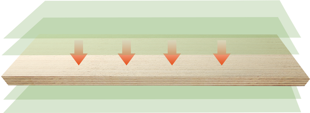 相鄰單板纖維垂直,順向層全齒接工藝,結構更穩定。