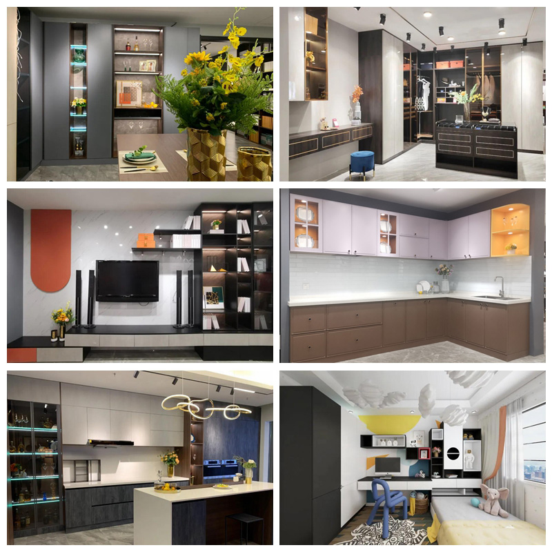 通過合理的空間布局,將鵬鴻板材、定制家居產(chǎn)品融入展廳設(shè)計(jì)的細(xì)節(jié)之中,配合“一站式”專屬定制服務(wù),將帶有理性和溫度的生活美學(xué)完美呈現(xiàn),讓家裝不再是一件雷同的事情。