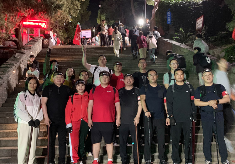 從山下到中天門,從南天門到玉皇頂,1545米海拔、6600余級臺階、8.2公里路程,鵬鴻人把不畏艱險、團結協作、勇攀高峰的精神鐫刻在泰山之巔。