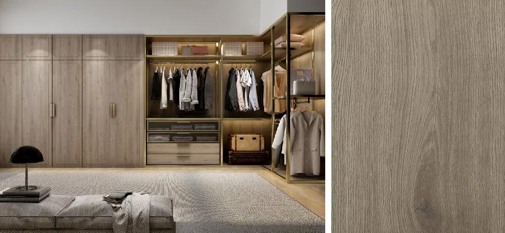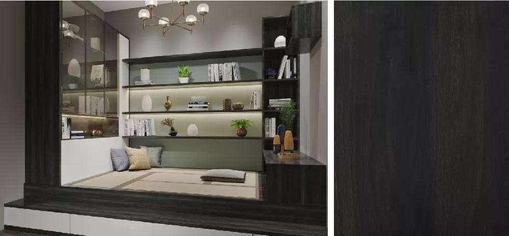 鵬鴻板材深刻詮釋原木自然屬性,德國進口0°度鋼板與超亞光膚感壓貼工藝,精確處理光的視覺影響,面層溫潤、光澤內斂,真實呈現原木天然肌理。